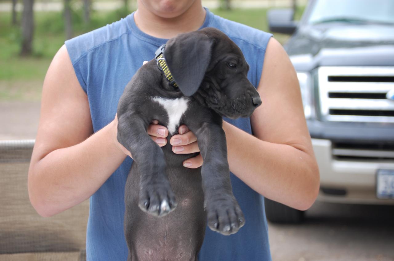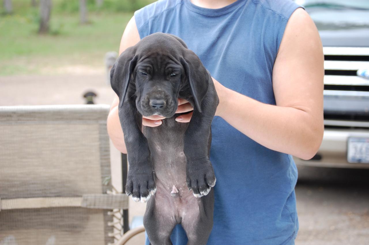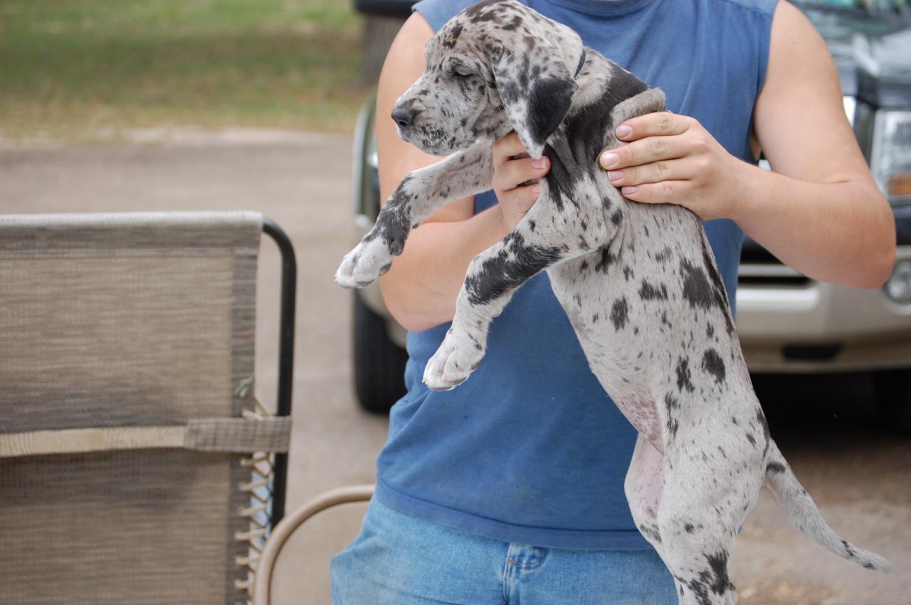 This is Harley and Chloe's first litter. These puppies were born on 3/3/09. We had 5 black males, two harlequin females, and 1 merle female. We still have 3 males and the merle female available.